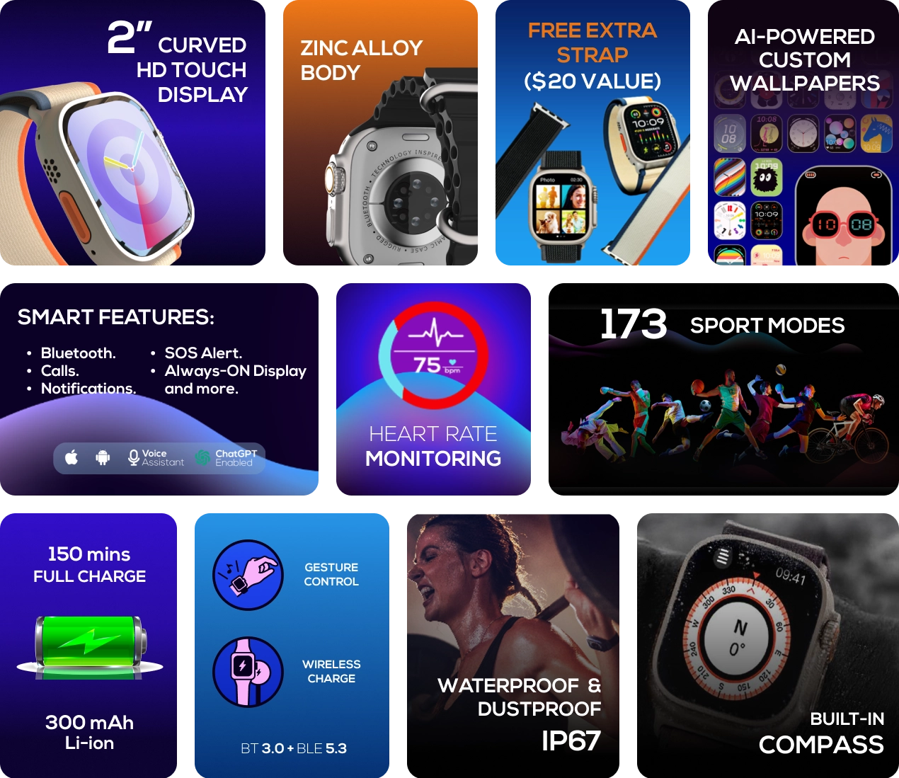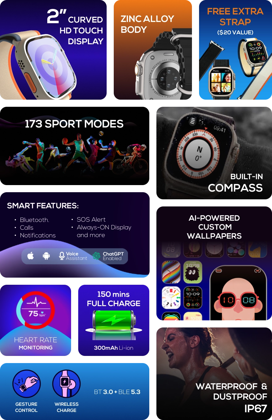Choose or generate exclusive watch faces with artificial intelligence. Your smartwatch, your style.