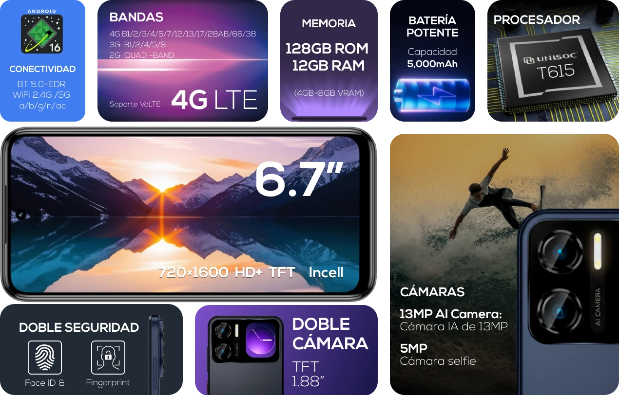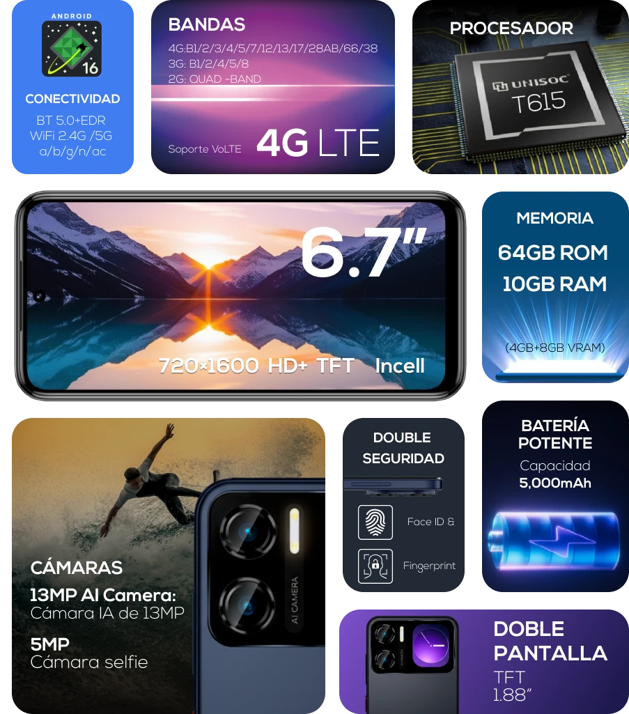 Pantalla LCD a color de 2.4” diseñada para una mejor visualización.