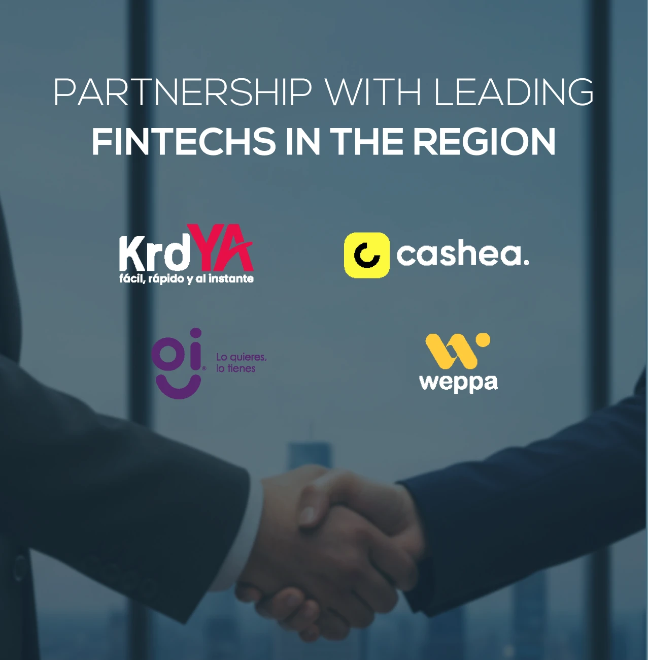 Las fintech asociadas Cashea, Oi, Weppa y KredYa operan en diferentes partes del mundo como Venezuela, El Salvador, Guatemala, Honduras y Costa Rica, consolidando así una red regional que amplía significativamente el alcance de nuestros servicios y mejora la experiencia del cliente.