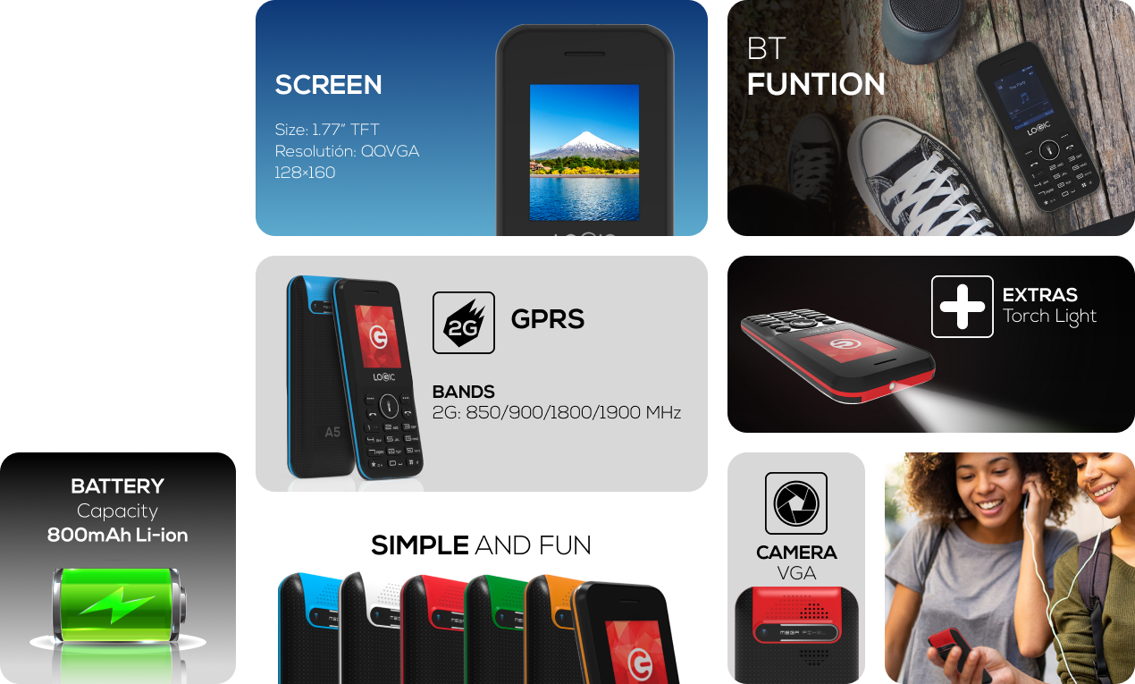Connect your A5 wirelessly to speakers and other audio devices with the BT function. Also, its radio FM capability will enable you to enjoy your favorite stations anywhere.