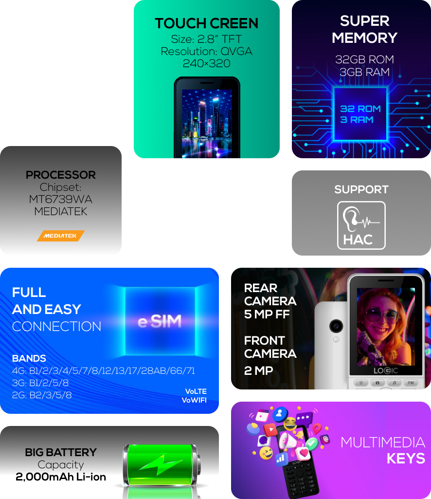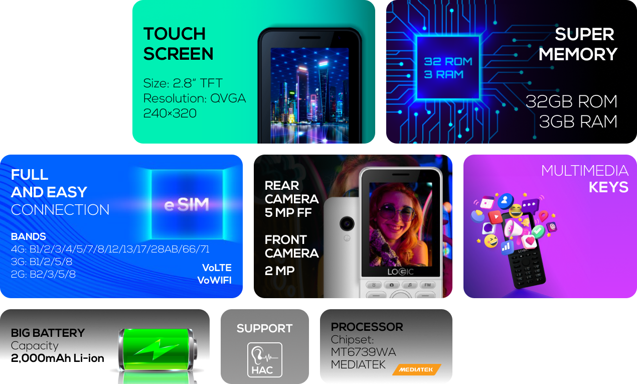 Micro SD: Up to 32GB
