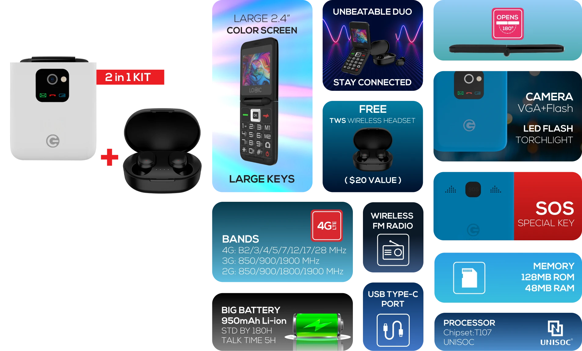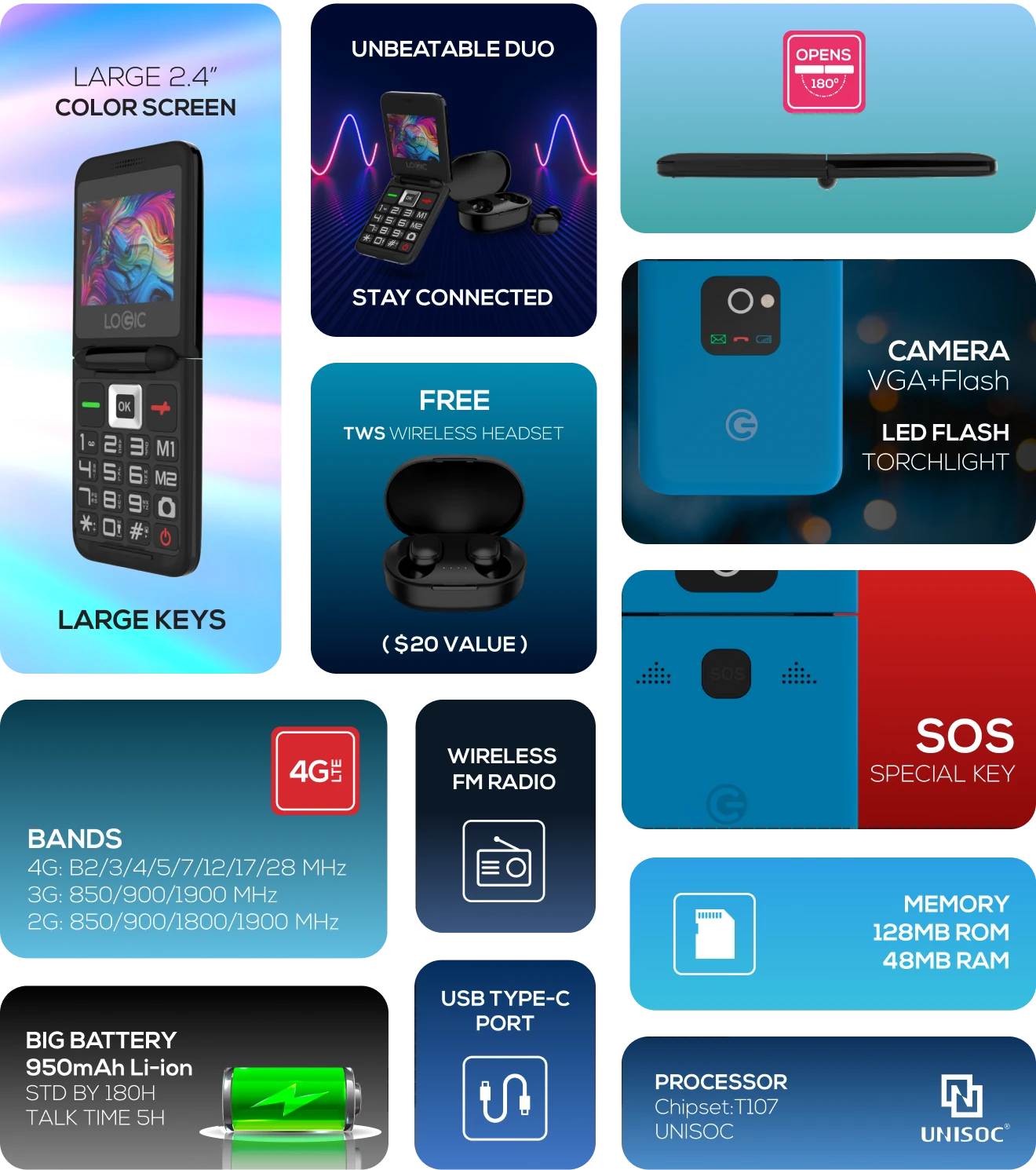 The Z3L features a slim design that fits easily in your pocket, with a 2.4″ horizontal color display and large keys for practical use.