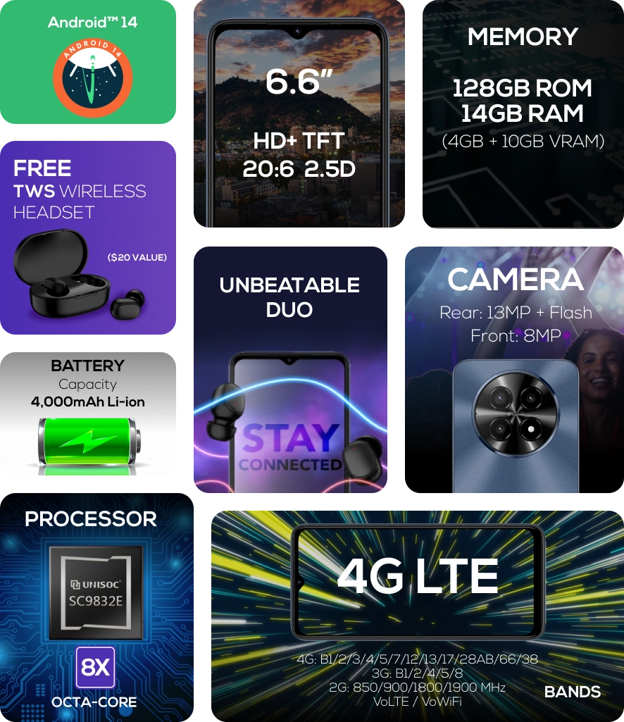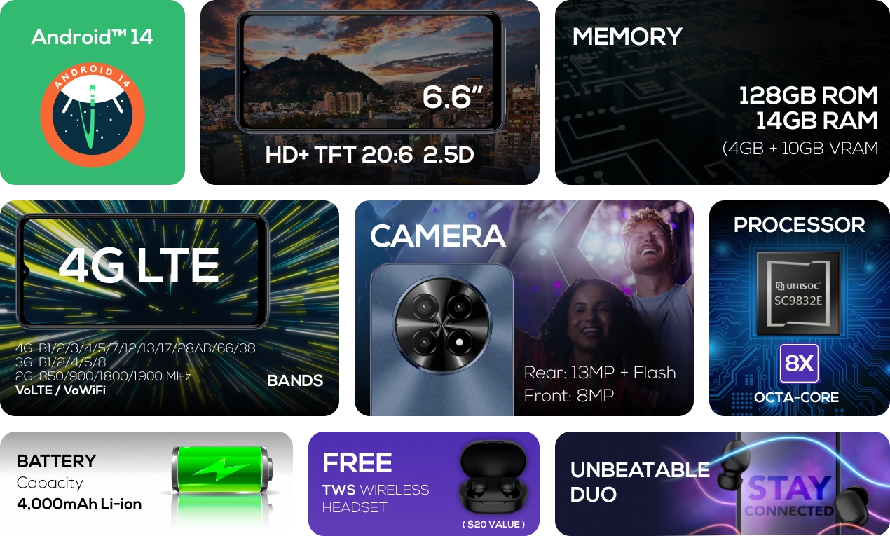 Enjoy improved photo quality, new themes, and wallpapers. Additionally, enhancements in audio functions, larger fonts, security updates, better performance, and battery optimization.