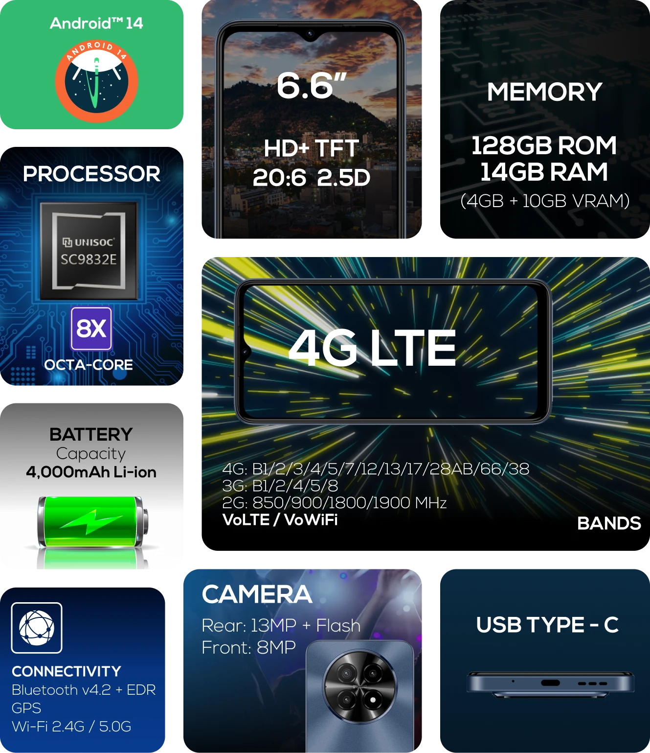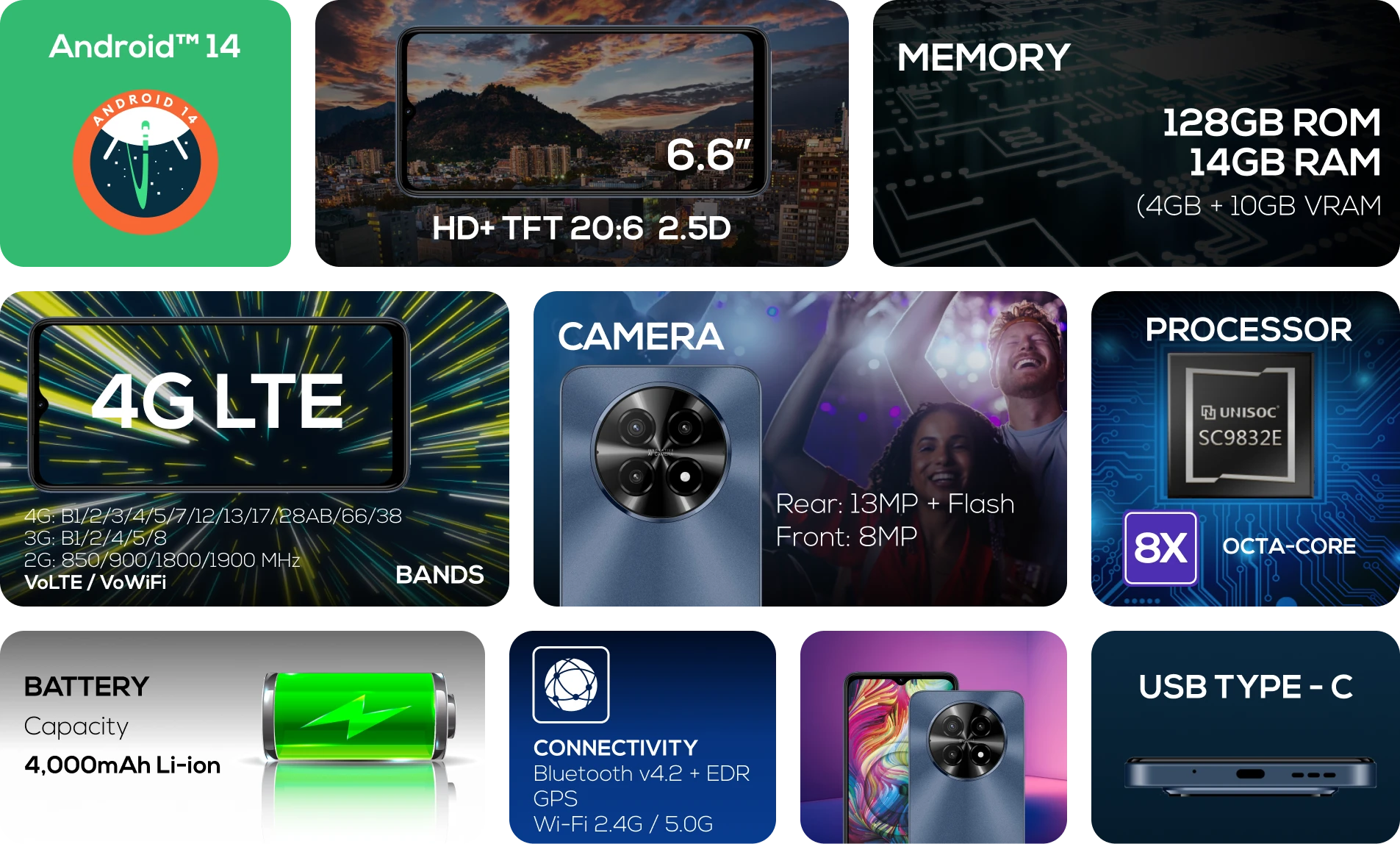 Enjoy improved photo quality, new themes, and wallpapers. Additionally, enhancements in audio functions, larger fonts, security updates, better performance, and battery optimization.
