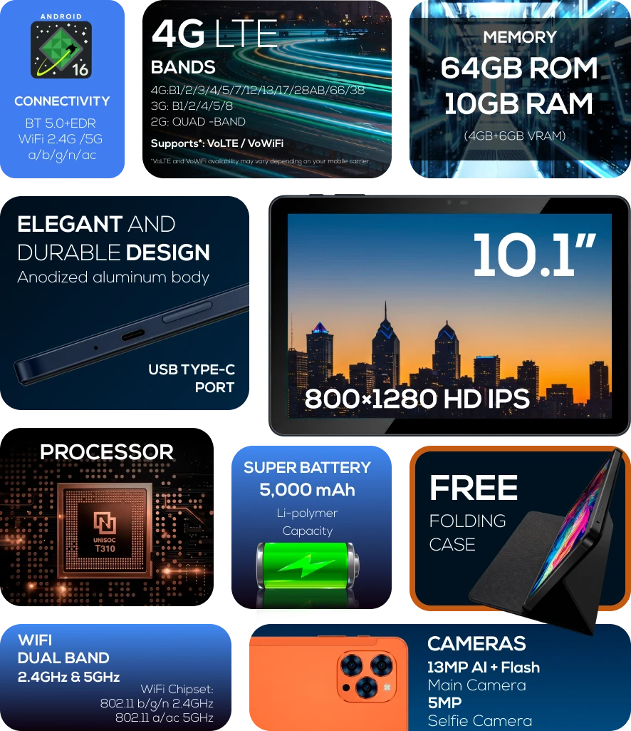 Micro SD: Up to 32GB